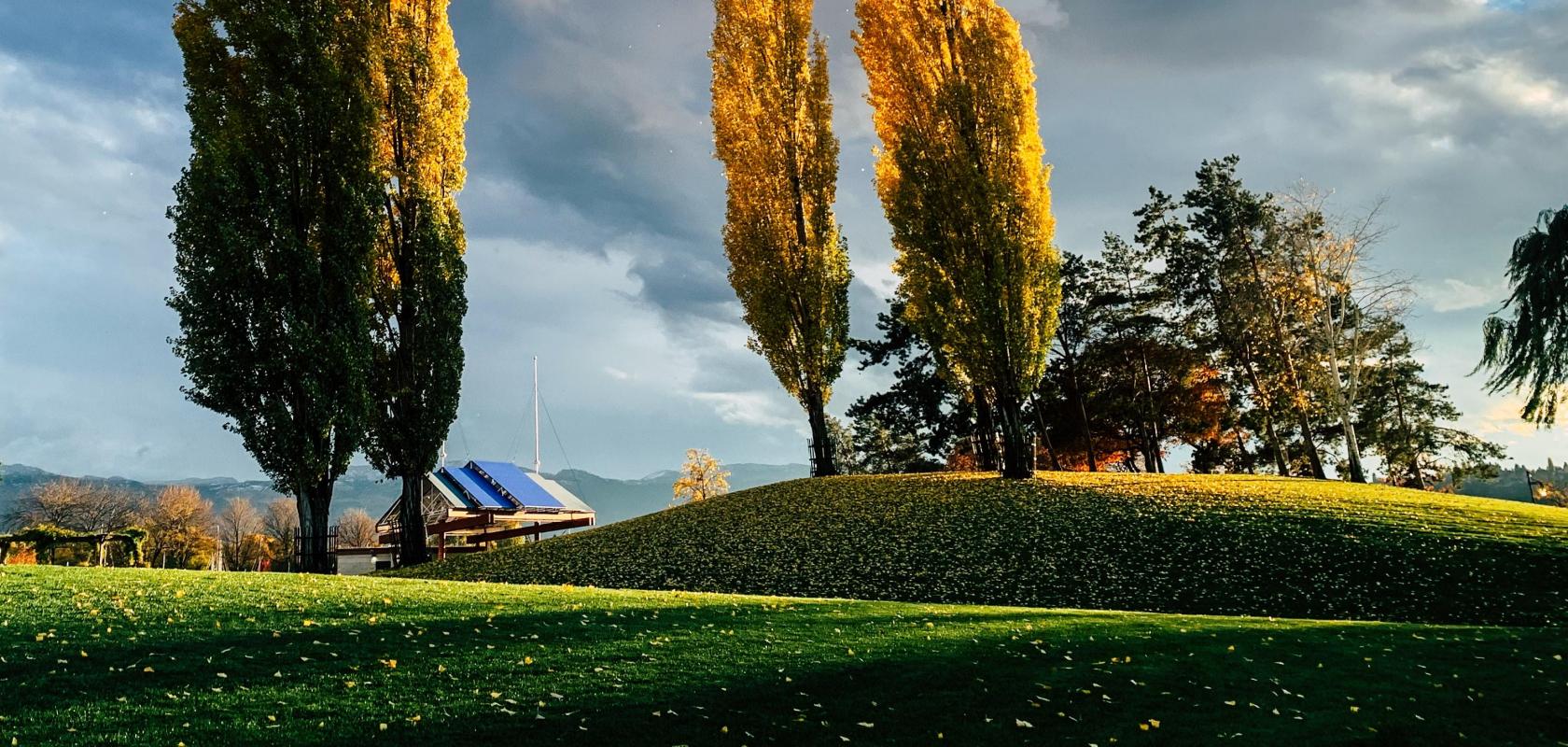 Established between 1918 and 1921 as a settlement for unemployed veterans of the First World War, a gravity-fed canal was constructed to provide irrigation to the semi-arid area, which accounts for the lush greenery around this area and one of the most picturesque places in the Okanagan.