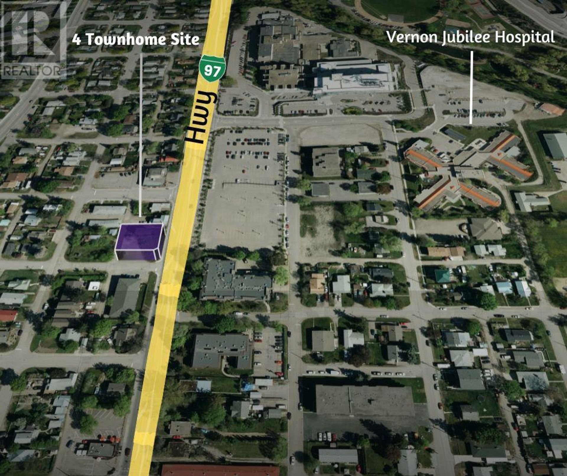 OPPORTUNITY FOR A BUILDING PERMIT READY project of 4 townhomes, 3 stories with 9 parking spots.6400 Sq Ft approx.(.147 acres) Corner Lot on Hwy 97 (32nd Street), across from Vernon Jubilee Hospital. 2 Units with 3 Bedrooms, 3.5 Baths, and 2 Units with 2 Bedrooms, Den and 3.5 baths Rec Room, Garage, Bicycle Rack, Patio. (id:14735)