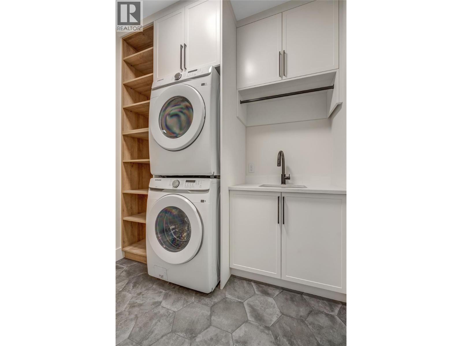 Luxurious family home with legal walk-out suite. Welcome to this stunning 2400+ square foot home in the highly sought-after The Ridge Penticton neighborhood. Blending modern design with functional living spaces, this home is perfect for families or those seeking rental income. The main house includes 3 bedrooms and 2 1/2 baths in a thoughtfully designed open-concept layout. The living area features beautiful white oak engineered hardwood flooring, while the ensuite bathroom features matte porcelain tile. The vaulted ceilings enhance the airy and spacious feel of the home. The kitchen is equipped with quartz countertops, custom cabinetry, and high-end Bosch appliances, including a gas range. For added convenience, the Samsung washer and dryer are located in a multifunctional mudroom/laundry room, which has private access from the 2-car garage. A fully carpeted staircase leads to the lower level, continuing into the hallway and one of the bedrooms. The legal walk-out basement suite offers 2 bedrooms and 1 bathroom, making it perfect for long or short-term rentals following the updated provincial legislation. The suite has laminate flooring in the main living area, a private entrance from the street with stair access, a spacious 200+ square foot covered patio and an in-suite laundry. Located in a peaceful neighborhood with access to local amenities, parks, and schools, this property also offers excellent rental potential with its legal suite. (id:14735)