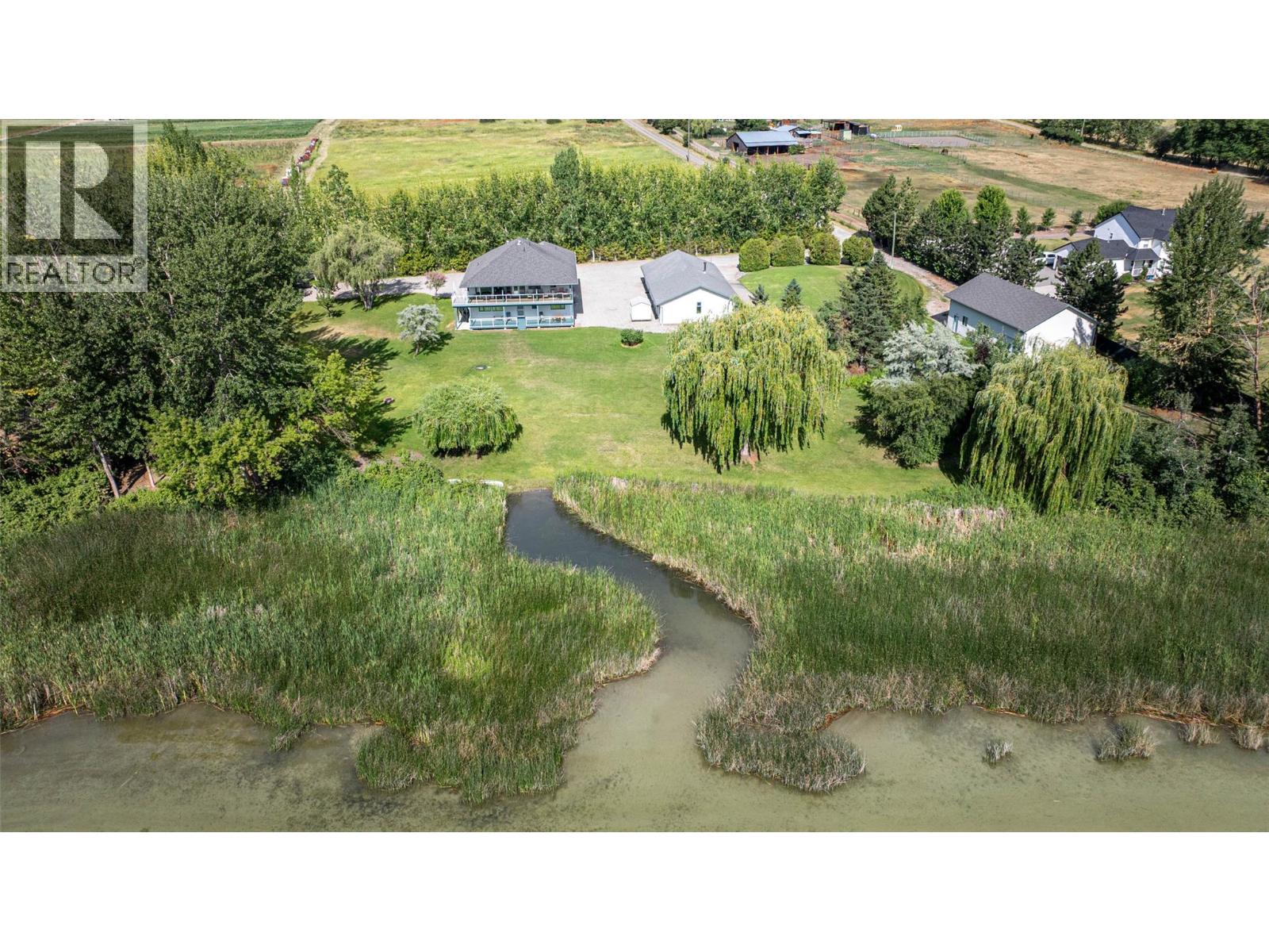 One of a kind property on Swan Lake! 1.95 manicured acres with an immaculate 6 bed/4.5 bath home with 2 detached Shops for your auto or wdworking hobbies. The home is of quality construction on 2 full levels. From the spacious entrance follow the curved staircase to the upper main floor to find the open living and dining rooms then the kitchen with an Island/eating bar. Off the kitchen is direct access to the covered 10'x43' deck where you will sit and enjoy your morning coffee over looking the Lake and enjoying the song birds in this natural wildlife sanctuary. The primary bedroom is on this level with an attached 5 pce. ensuite bath and walk-in closet. 3 more bedrms. with a ""Jack and Jill"" bathrm conveniently situated between 2 of them as well as another full bath. Downstairs off the foyer is the office/den along with a 2 pce. powder room. Also on the ground floor is an oversized family room with gas fireplace, 2 remaining bedrms, full bathrm and laundry. The ground floor could easily be converted to a separate suite with the side entrance and covered 10' x 43' patio. Outbuildings include a 32'W x70L'x 8'H' insulated/partitioned Shop with 200 amp service with roughed in plumbing, 2nd Shop is 30'W x 50'L x 16'H with 2x14' roll up door with 100 amp service. The landscaping includes a stone water fountain and pond along with ample lawns and mature trees. The home is heated with Gas forced air furnace and cooled with central A/C. Water via drilled Well. All perimeter fenced. (id:14735)