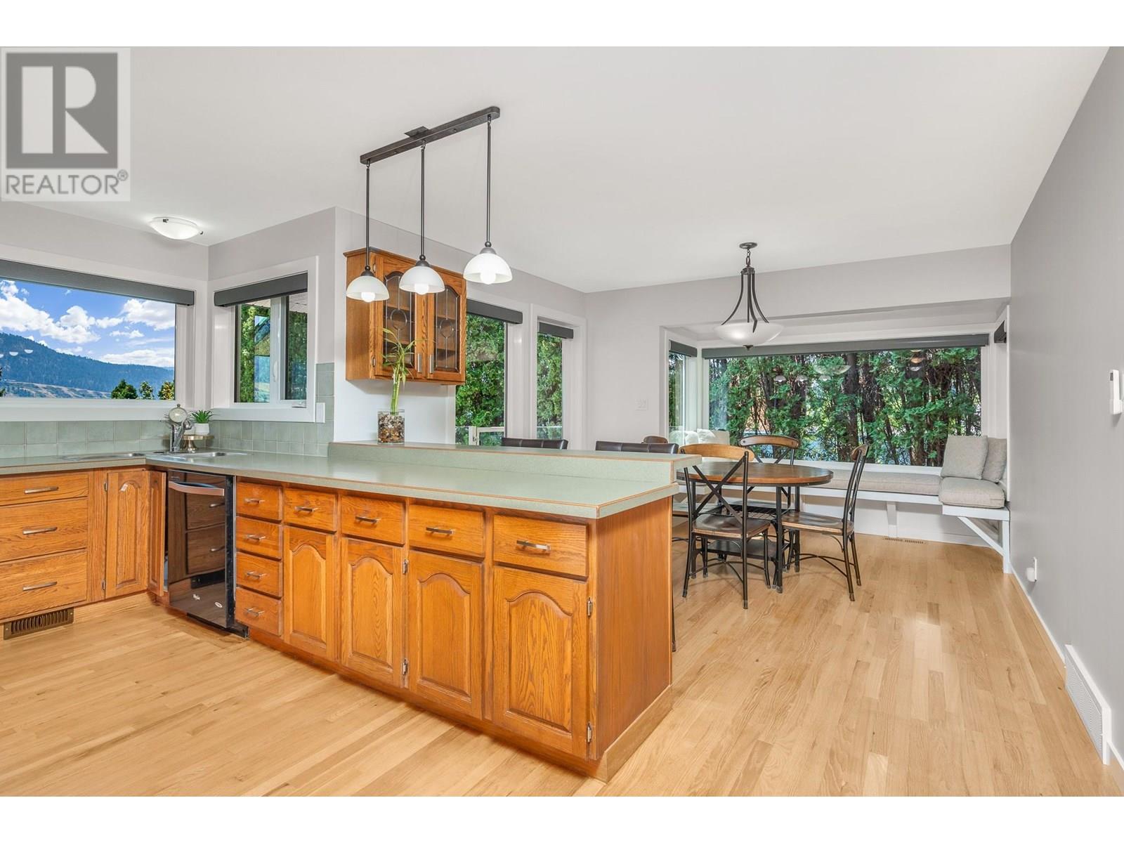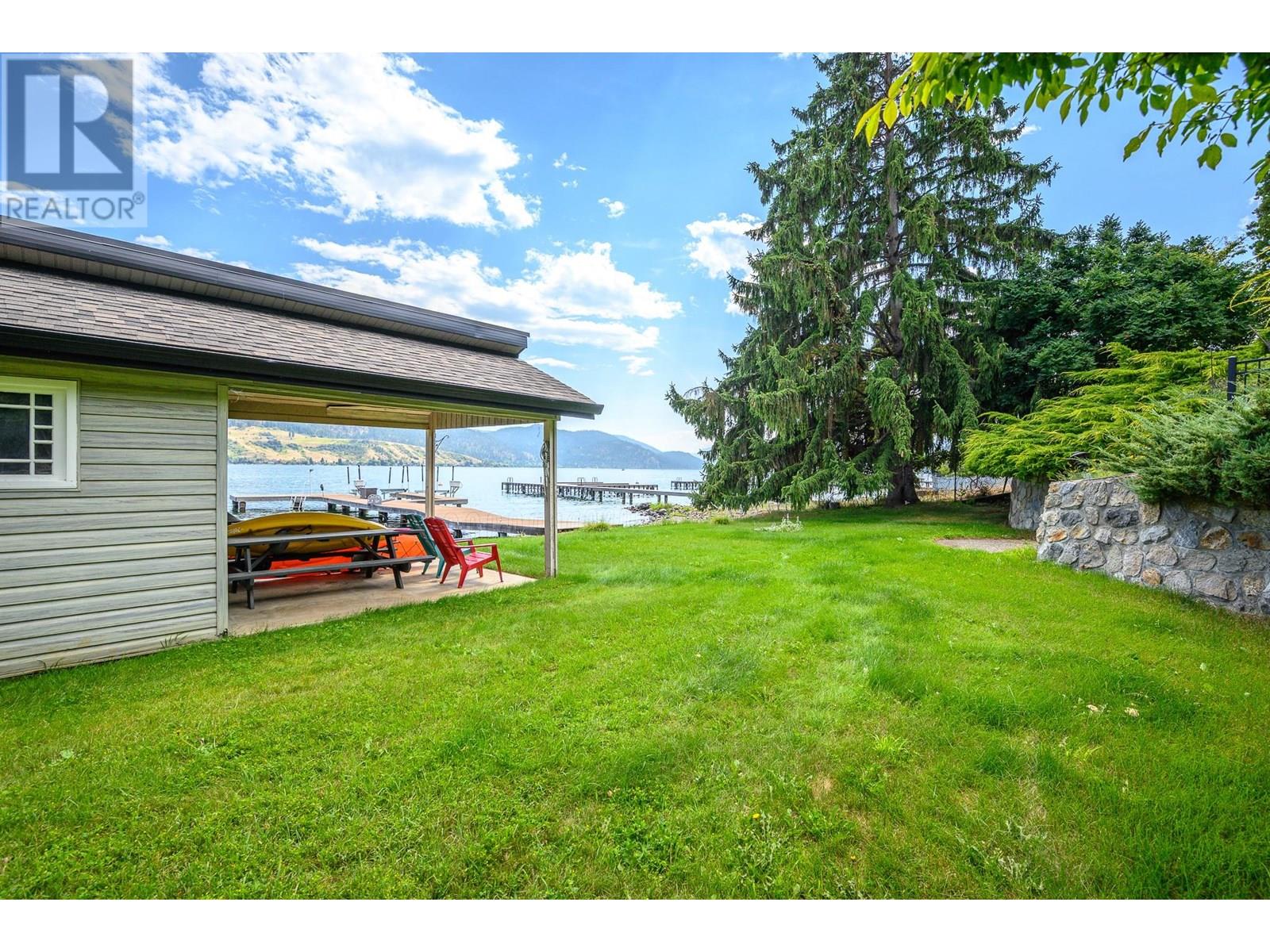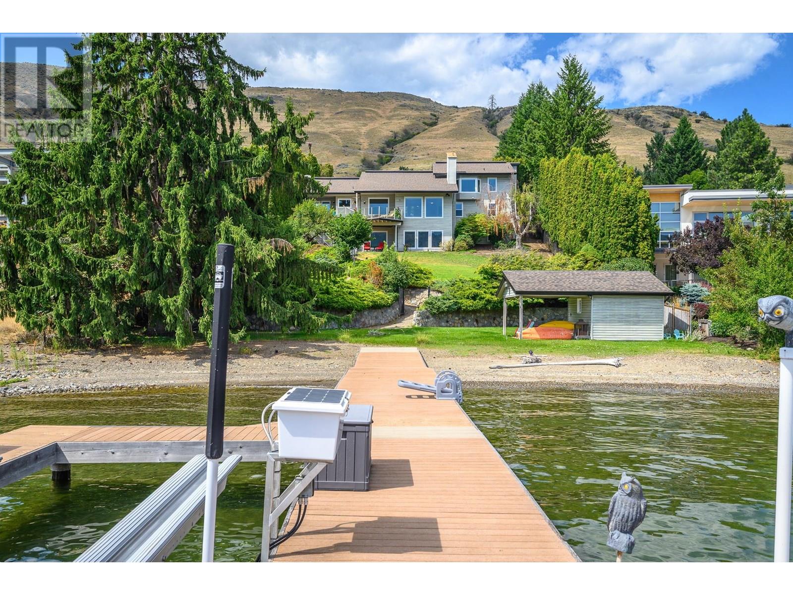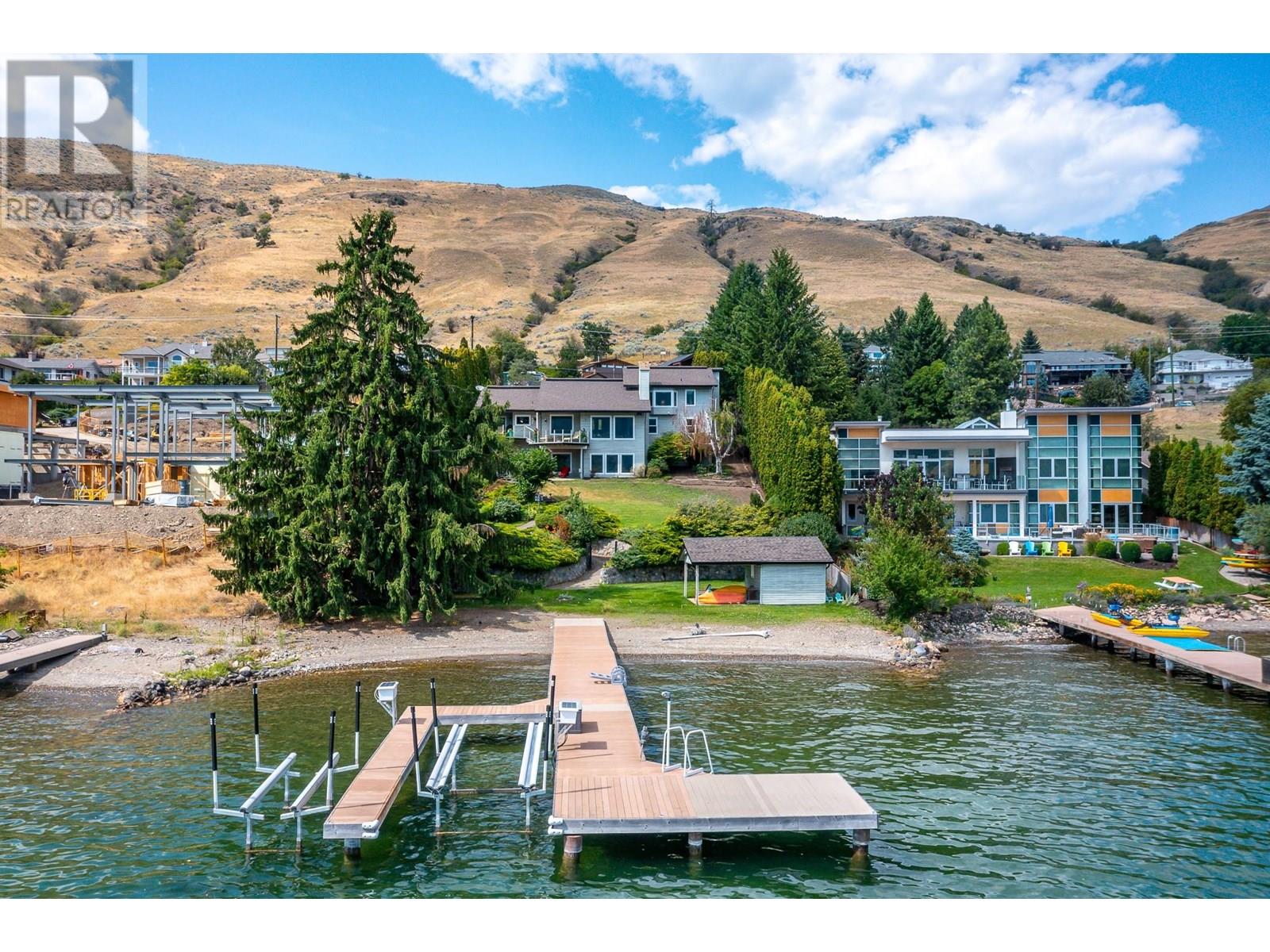 Welcome to your private 0.65 acre waterfront retreat on the shores of Okanagan Lake. This gated, multi-level home offers 98 feet of prime lakefront with a private dock and two boat lifts—perfect for embracing the Okanagan lifestyle. With 5 beds, 4 baths, and a 2-bay garage providing ample parking and storage, there’s plenty of room for family and guests to relax in comfort. Inside, the home offers a smart division of space across three levels. The primary suite crowns… the top floor with expansive lake views, a walk-in closet, and a luxurious 3-piece ensuite. Both the main and lower levels feature two well-appointed bedrooms, each pair separated by a full bath and tucked privately down a hall—ideal for family or guests. Entertain in the bright, open-concept kitchen with breakfast nook and formal dining room. The oversized living room with fireplace offers panoramic lake views, while the family room below adds flexibility for games, media, or quiet lounging. Step outside to a fully fenced and irrigated yard, perfect for entertaining or letting kids and pets roam safely. Down at the water, your private dock with 8,000 lb and 6,000 lb boat lifts awaits. A beachside storage shed & covered patio is ready to become your own lakeside cabana. Swim, paddle, or cruise—all from your backyard. This rare lakefront gem blends natural beauty, space, and recreation in one exceptional package. (id:14735)