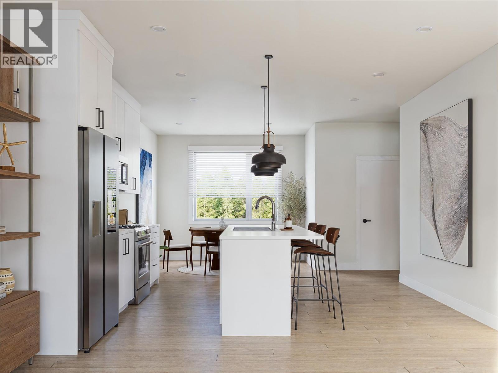 Welcome to MaraVista, Sicamous’s newest townhome community where modern design meets practical living. Unit 4 -This 1,486 sq.ft. 3-bedroom, 2.5-bathroom home features a generous 39’ x 13’ garage—great for storing recreational gear, boats, or extra vehicles. Inside, the open-concept main floor offers a bright & functional layout with 9’ ceilings, enhanced soundproofing, & a galley-style kitchen complete w/ quartz countertops, matte black hardware, soft-close cabinetry, & a convenient eating bar. A street-facing deck extends your living space outdoors—ideal for sunny mornings & great people-watching. Upstairs, the spacious primary bedroom includes a full ensuite & walk-in closet. 2 additional bedrooms, a second full bathroom, & laundry are also located on the upper floor, offering comfort & practicality for families, couples, or long-term guests. Quality finishings run throughout, including durable vinyl plank flooring, energy-efficient windows, & a high-efficiency mini-split heating & cooling system. Exterior features include low-maintenance Hardie Plank siding and modern curb appeal. MaraVista is just steps to Sicamous’s main street, beaches, marinas, & year-round recreation. Pet-friendly (w/ size restrictions) & zoned for long-term rentals only, this development is ideal for those seeking a vibrant yet low-maintenance lifestyle. BONUS $5,000 appliance credit offered for the first 4 units sold, this is your opportunity to own in one of BC’s best lakefront communities. (id:14735)