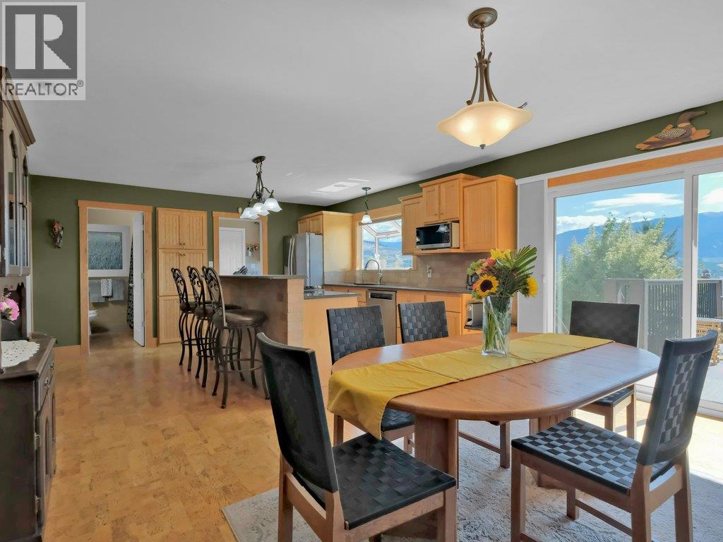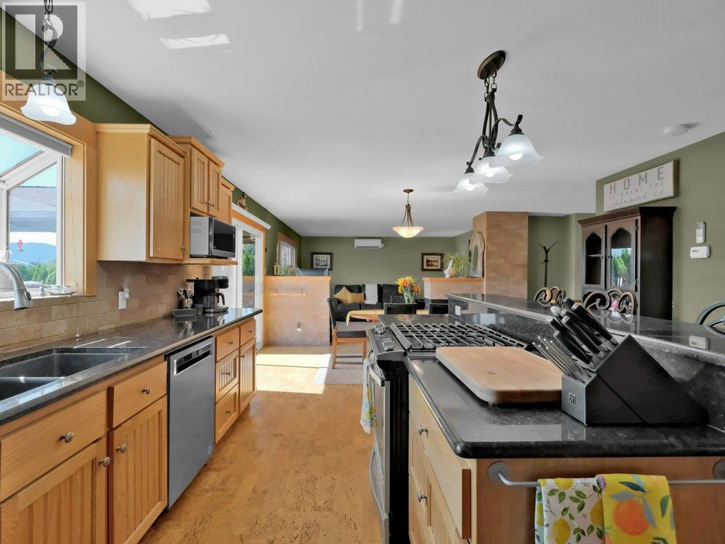 Welcome to 6475 Blue Jay Rd. A versatile 4-Bedroom Home with in-law, Huge SHOP, and Incredible Entertainer’s Deck, over looking a lovely mountain view. Inside, the open-concept main floor is anchored by a chef-inspired island kitchen featuring a gas range, ample counter space, and a large island with seating—ideal for casual meals or hosting friends. The kitchen flows seamlessly into the dining and living areas, all filled with natural light. Step through sliding doors to the expansive covered deck, thoughtfully designed for year-round entertaining, complete with a built-in BBQ, beverage fridge, ceiling heater, fam and plenty of room for outdoor dining and lounging while enjoying the view. Private 1-bedroom suite with a separate entrance and shared laundry—perfect for extended family, guests, or rental income. Car enthusiasts, hobbyists, or tradespeople will love the massive detached workshop, quipped with a 220V plug, this space is truly a mechanic’s dream, offering room for projects, tools, and storage with it's own drive. Double driveway with room for plenty of parking. The backyard is private and inviting, with space to relax and unwind in the included hot tub. With an EnerGuide rating of 76 (2010), the home offers solid energy efficiency to help keep utility costs down. This property truly checks every box—spacious living, income potential, exceptional storage and workspace, and a setting that offers both privacy and convenience. (id:14735)