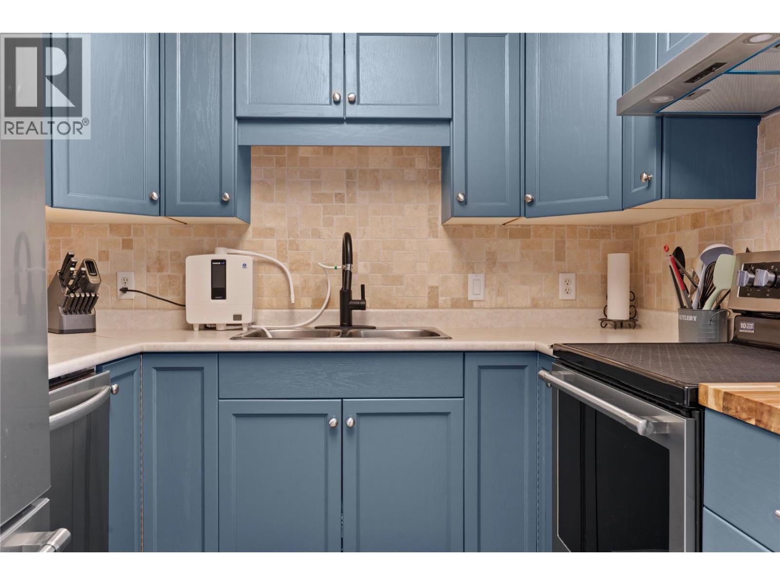 Welcome to this 917 sq ft, 2-bedroom, 2-bathroom townhome in a fantastic central location - close to parks, schools, shopping, and public transit. With no age restrictions and the ability to bring up to 2 pets (dogs or cats, 15” height limit), this home offers convenience and flexibility for a wide range of buyers. Step inside to find a bright, well-maintained interior with many recent updates. The kitchen shines with a brand-new island, freshly painted cabinets (2025),… and a full suite of updated appliances - including stove, refrigerator, dishwasher, microwave, and hood fan (all 2025). The washer and dryer (2023) and newer flooring throughout (2024) add to the move-in ready appeal. The spacious primary bedroom features a walk-in closet and a 3-piece ensuite with walk-in shower. Relax in the cozy living room with a gas fireplace focal point, or enjoy your private covered patio with easy access to a grassy area—perfect for pets. This quiet, well-cared-for complex offers low strata fees of just $217/month, which include grass care and snow removal, plus a healthy contingency fund for peace of mind. Whether you’re a first-time buyer, downsizer, or investor, this updated townhome combines comfort, convenience, and excellent value in the heart of Vernon. (id:14735)
