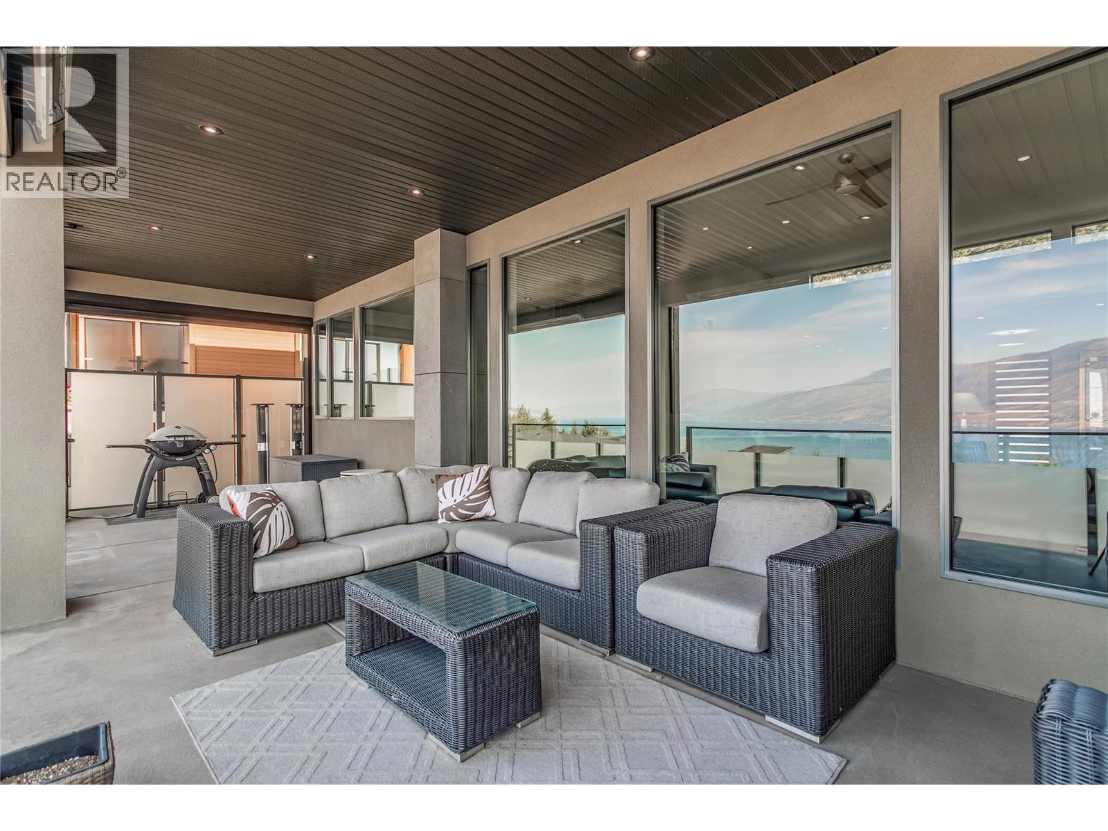 Custom-built 3,521 sq ft open-concept home impresses from the moment you step inside, offering soaring ceilings, refined finishes & expansive windows framing stunning lake views from both levels. OFFERED FULLY FURNISHED for a truly TURNKEY OPPORTUNITY. Chef-inspired kitchen feat. quartz counters, oversized island w/ pop-up outlet, gas cooktop, dbl wall ovens, beverage fridge, Fisher & Paykel appliances, dual-drawer dishwashers, soft-close cabinetry, b/in spice rack, walk-in pantry & modern travertine backsplash. Primary suite is a private retreat w/ generous walk-in closet & spa-inspired ensuite feat. heated floors, dbl sinks, freestanding soaker tub, tiled walk-in shower & enclosed water closet for privacy. Lower lvl offers two spacious bedrooms, a versatile family/rec space, full bath w/ shower & access to a private hot tub. Enjoy indoor-outdoor living w/ infrared deck heaters, motorized sunshades, BBQ outlet & frosted glass railings for privacy. Add’l highlights incl. radiant in-floor heating, Navien HWT system, 8’ solid-core doors, laundry chute, dimmable lighting, motorized blinds, epoxy-finished garage floors w/ storage cabinets, powder room off the garage & new washer/dryer. Meticulously maintained & beautifully finished, this home offers exceptional luxury, comfort & functionality in the heart of McKinley Beach, known for its private marina, 10 km of trails, tennis/pickleball courts, outdoor gym, playgrounds & quick access to YLW, shopping & amenities. Shows AAA! (id:14735)