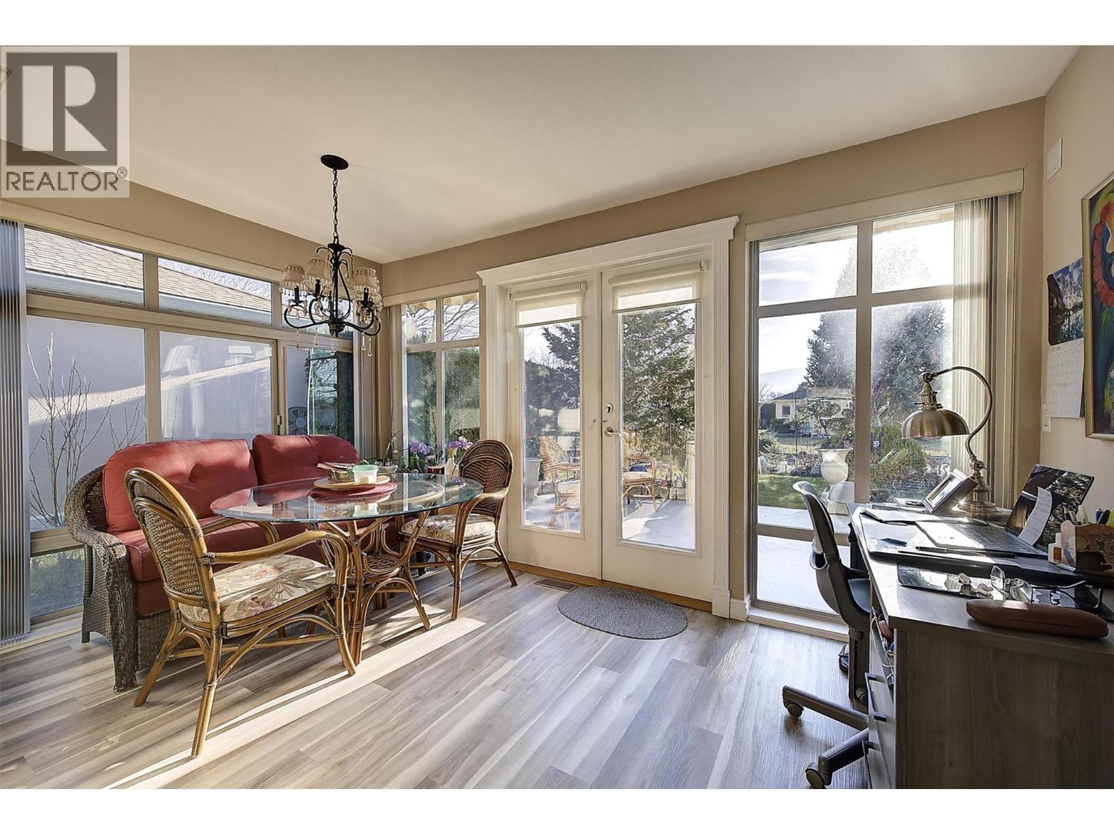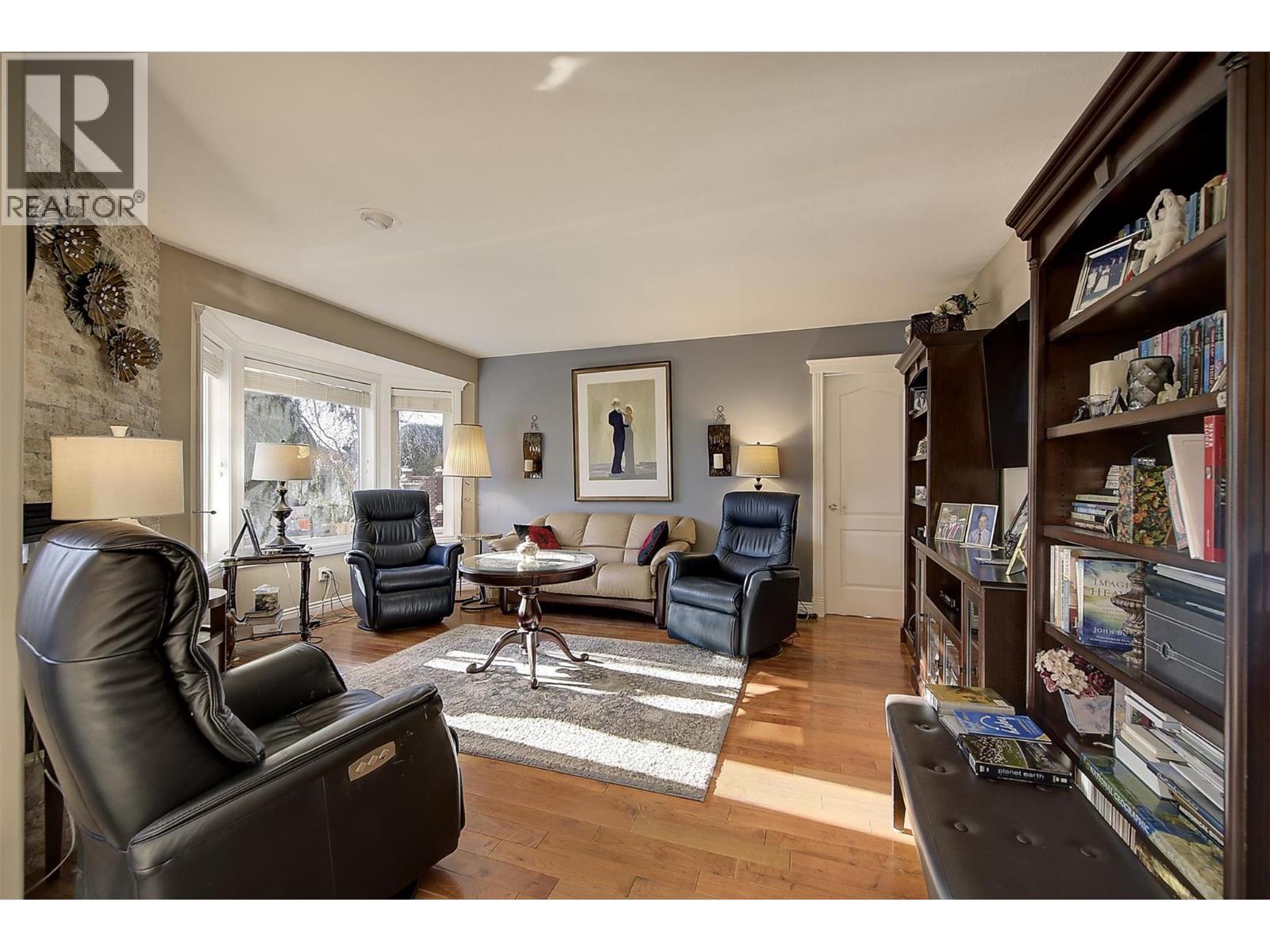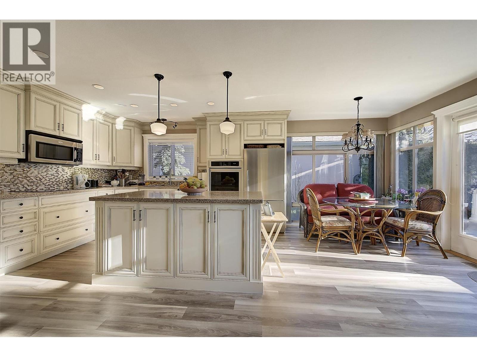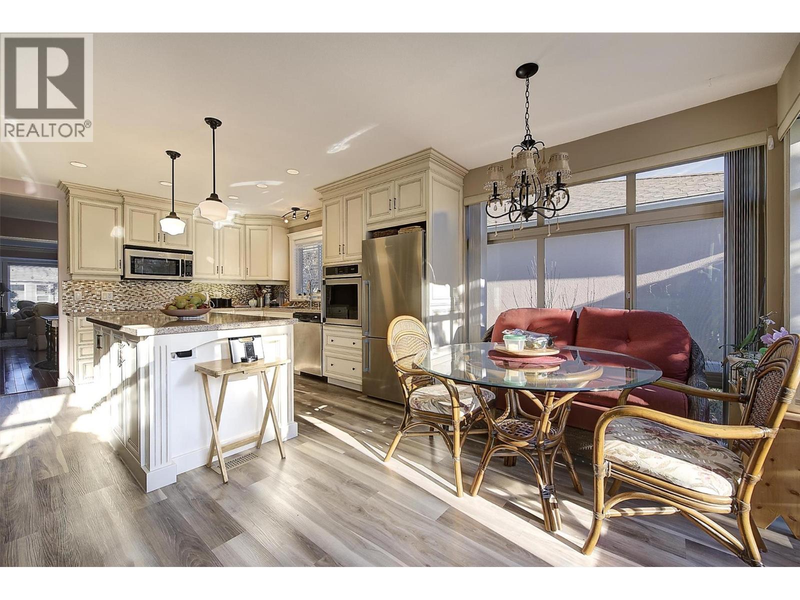 Welcome to Sandstone, a premier and sought-after 55+ gated community offering resort-style retirement living. This rare detached rancher is a bare-land strata (you own your lot) positioned on the quiet side of the community, backing onto serene waterscape. Appraised $855,000 (Nov 2025). Home is meticulously maintained, thoughtfully updated, and truly move-in ready. The home offers bright and spacious open floor plan with vaulted ceilings, three bay windows, skylights. Living and dining areas provide an inviting setting for entertaining and family time, separate family room complete with a cozy gas fireplace. The custom island kitchen is a dream, featuring a wall of cabinetry, quartz countertops, built-in S/S appliances. Kitchen flows seamlessly into family room out to private, extended south-facing patio. Home offers 2 generous bdrms and 2 updated bathrms. Master bdrm with walk-in closet, full ensuite with walk-in shower. second-level family room with 5 storage areas. Spacious sec. bdrm with full bath. Double attached garage with workbench, updated furnace, hot H2O on demand with 3 dedicated tanks, upgraded plumbing, vinyl windows, updated flooring, built-in vac, exposed aggregate driveway. Central walkable location close to Guisachan Shopping, KGH, parks, transit, bike paths. Sandstone provides vibrant lifestyle with clubhouse featuring year-round social events, in/outdoor pool, swirl pool, hot tub, fitness, library, billiards room. RV parking, 1 dog or 1 cat (size restr.) (id:14735)