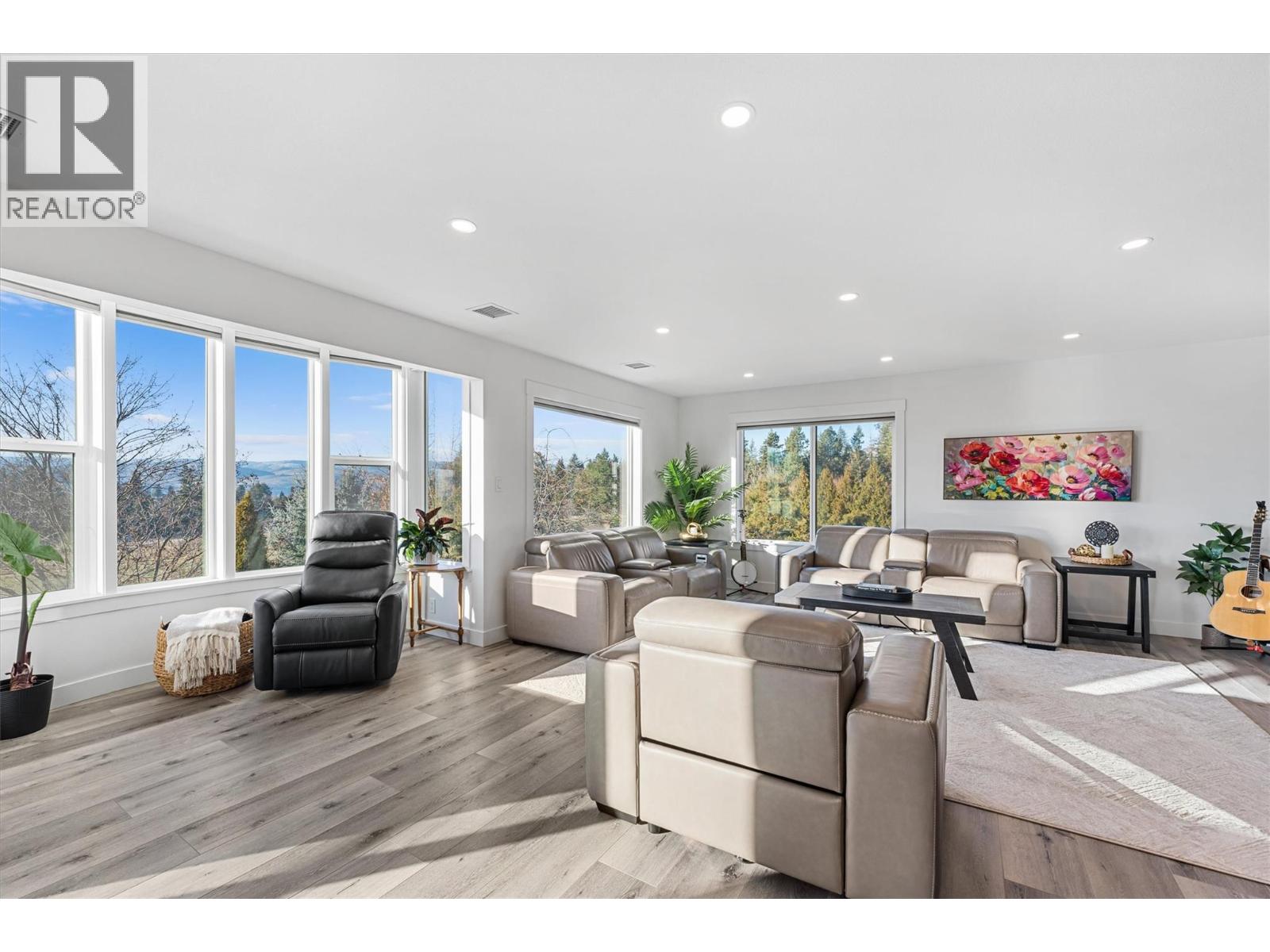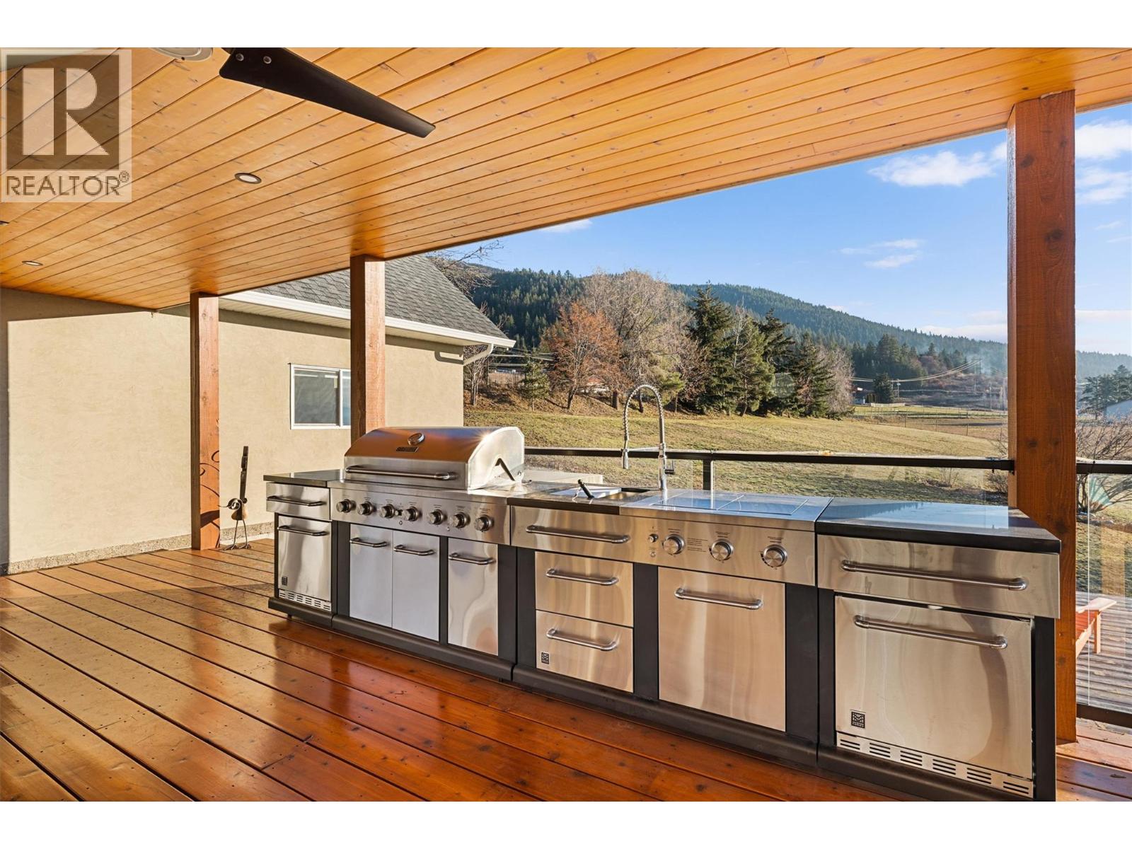 A rare opportunity to own a modern country estate on over 15 certified organic acres just five minutes from Vernon. This 4,687 sq. ft., 6-bed, 4.5-bath residence was extensively renovated by Keith Construction in 2022, featuring premium quartz surfaces, luxury wide-plank flooring, solid wood doors, Lutron lighting, updated plumbing and electrical, and in-floor radiant heat on all levels. A chef’s kitchen with Wolf appliances, a Fisher & Paykel built-in fridge, butler&r…squo;s pantry, and large island opens to sun-filled living and dining spaces, along with a covered west-facing Western Red Cedar deck with hot tub for effortless indoor-outdoor entertaining. The upper-level primary suite is a true retreat with lake and orchard views, a Juliette balcony, and spa-inspired ensuite, while a separate one-bedroom in-law suite on the lower level offers private access, parking, and a patio. A 4,000+ sq. ft. lofted, fully serviced shop with three bays, mezzanine office, and RV/boat capacity creates incredible potential for hobbies, storage, or a home-based business. The property also includes 4+ acres of mature organic apple trees featuring 20 varieties, creek frontage, ample exterior and interior parking, and panoramic valley and lake views. (id:14735)