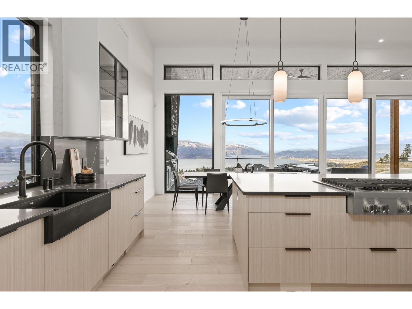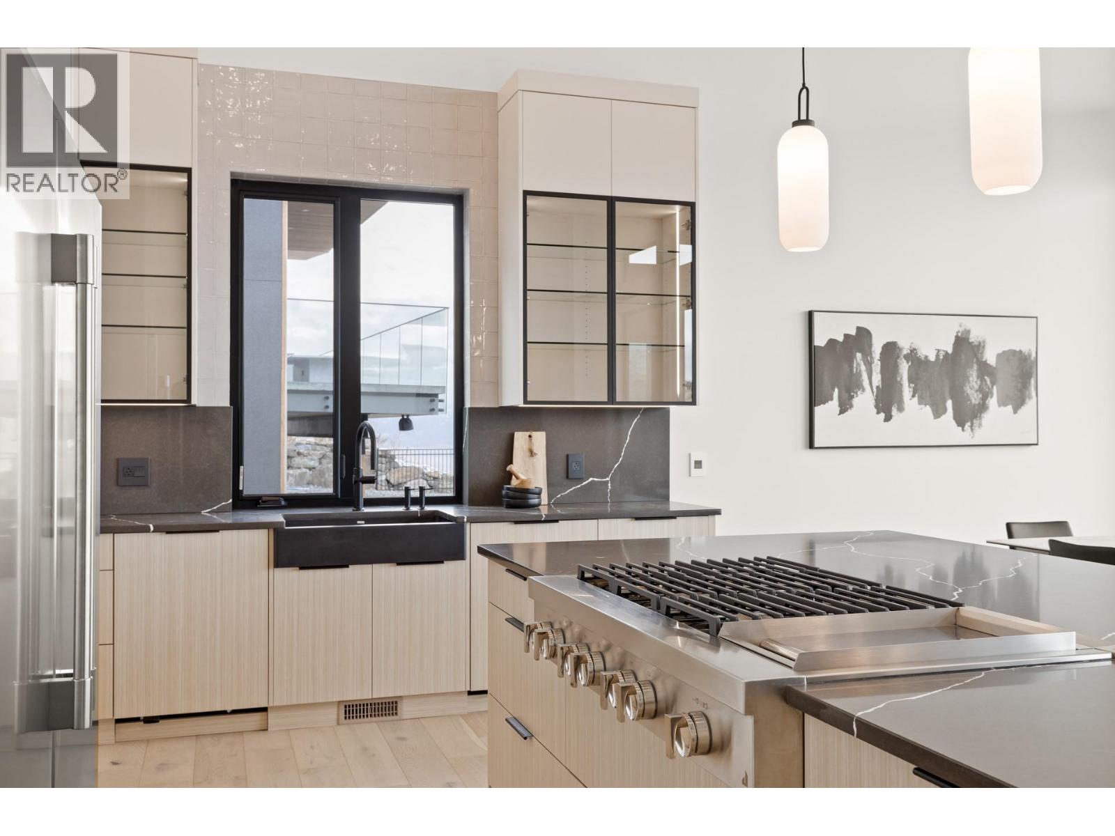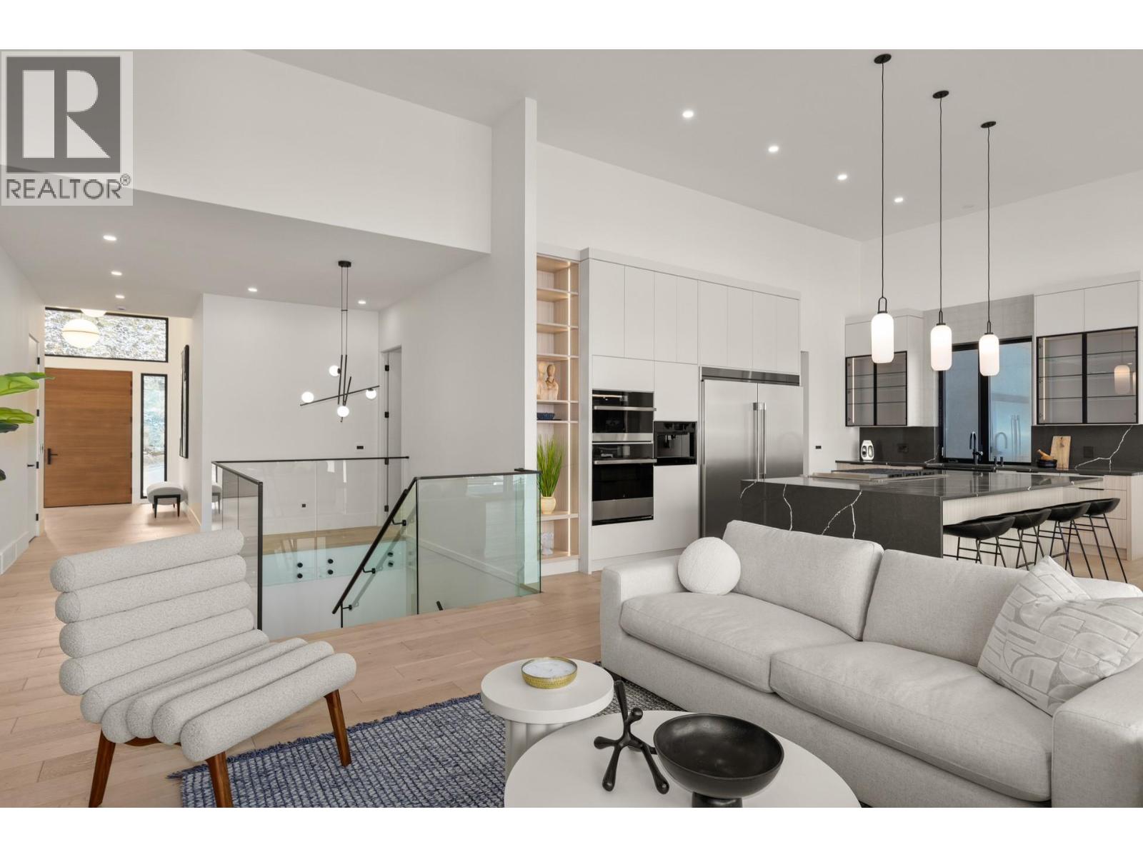 Experience modern Okanagan luxury in this brand-new custom-built walkout rancher, designed to impress with striking architecture, high-end finishings, and breathtaking lake, sunset, and city views. This home seamlessly blends contemporary elegance with functional design, delivering an unmatched indoor-outdoor lifestyle. The open-concept main level is highlighted by floor-to-ceiling sliding doors that expand to a spacious covered patio, complete with built-in BBQ, fire table, …and panoramic views. The chef’s kitchen is a showstopper with premium Jennair appliances including a 6-burner gas cooktop, built-in oven, full-size fridge/freezer, double dishwashers, and built-in coffee station. A walk-through pantry connects directly to the laundry room and heated garage for everyday convenience. The luxurious primary bedroom features spa-inspired ensuite with fluted freestanding tub, steam shower, and large walk-in closet. A private office and a designer guest powder room with preserved moss wall and onyx sink complete the main level. Downstairs is designed for entertaining, opening directly to your backyard oasis with 16x32 pool (with auto cover), hot tub, and a second built-in BBQ area. Inside, enjoy the wet bar, theater room, gym with sports flooring, and ample storage. The legal 1-bedroom suite (option for a 2nd bdrm) offers flexibility for guests or rental income. Oversized heated garage features epoxy floors, an 11-foot door for RV or boat access, and roughed-in A/C. (id:14735)