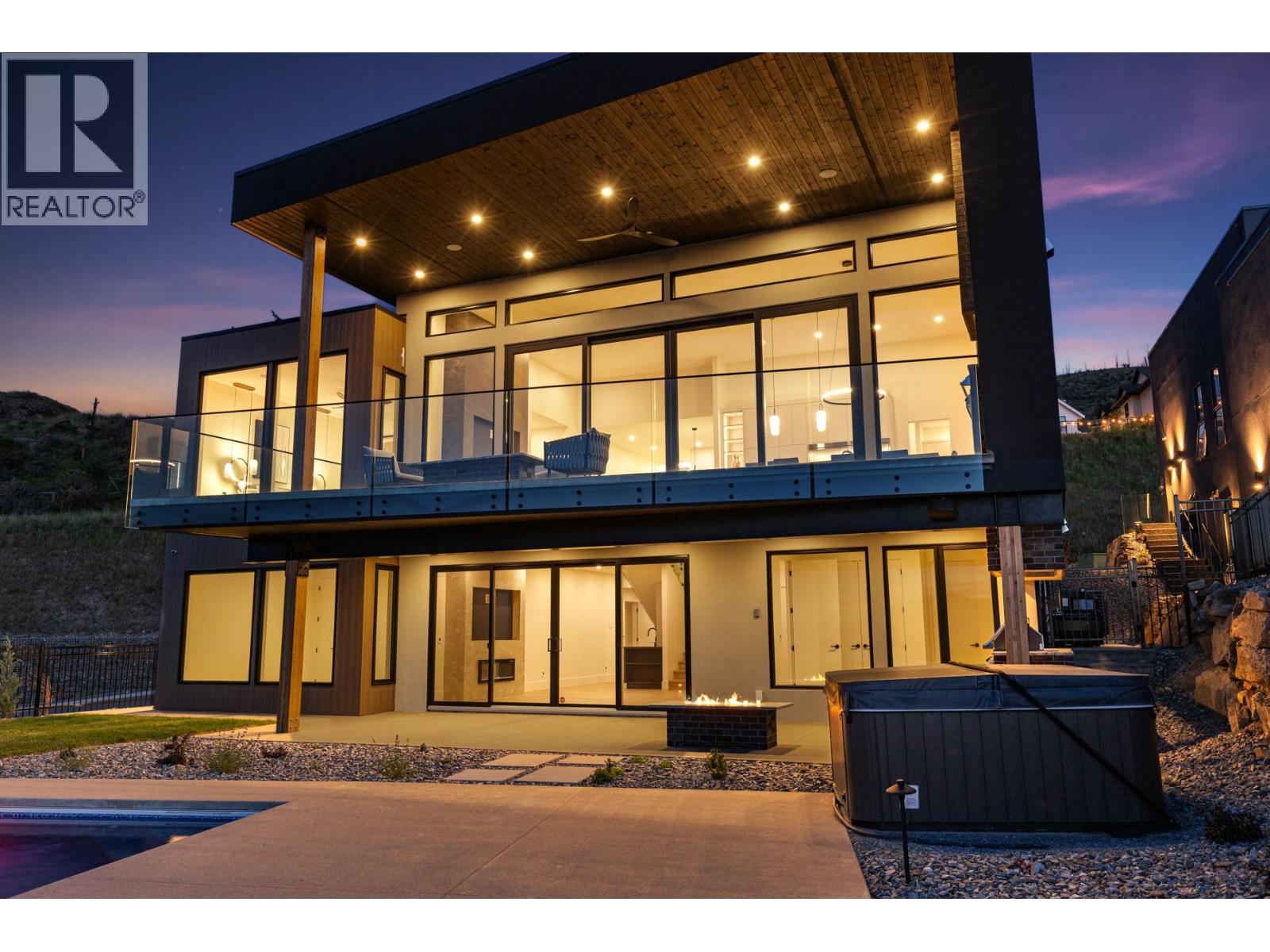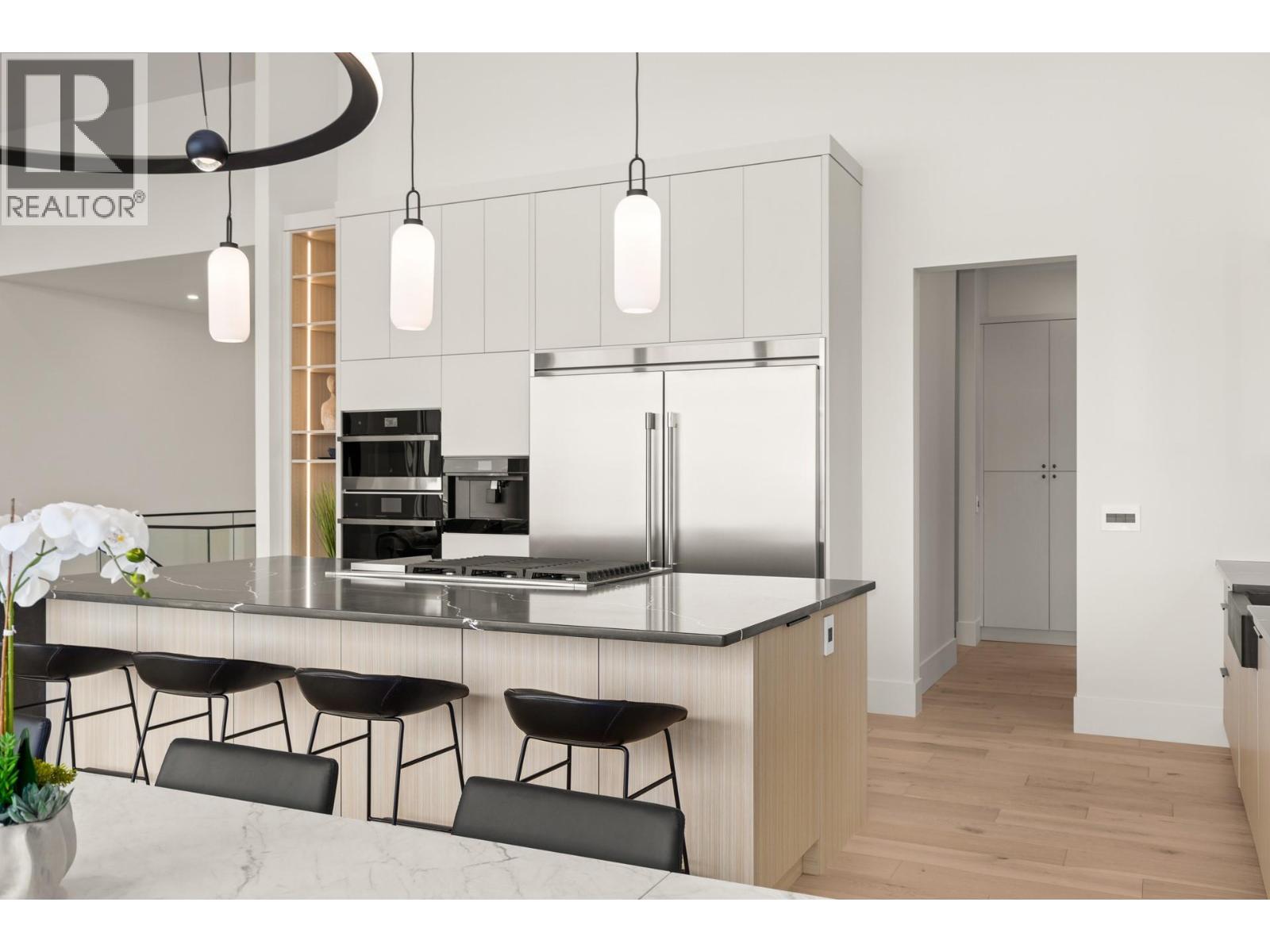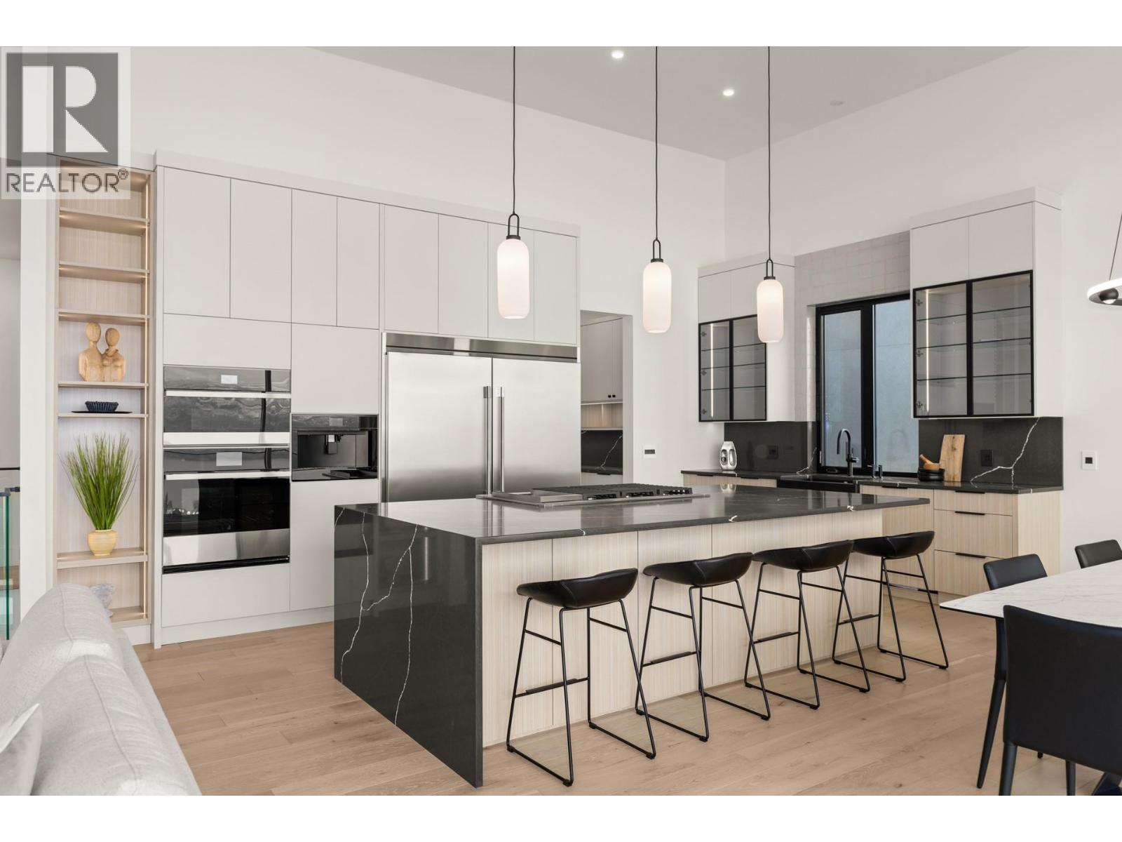 Experience modern Okanagan luxury in this brand-new custom-built walkout rancher, designed to impress with striking architecture, high-end finishings, and breathtaking lake, sunset, and city views. This home seamlessly blends contemporary elegance with functional design, delivering an unmatched indoor-outdoor lifestyle. The open-concept main level is highlighted by floor-to-ceiling sliding doors that expand to a spacious covered patio, complete with built-in BBQ, fire table, …and panoramic views. The chef’s kitchen is a showstopper with premium Jennair appliances including a 6-burner gas cooktop, built-in oven, full-size fridge/freezer, double dishwashers, and built-in coffee station. A walk-through pantry connects directly to the laundry room and heated garage for everyday convenience. The luxurious primary bedroom features spa-inspired ensuite with fluted freestanding tub, steam shower, and large walk-in closet. A private office and a designer guest powder room with preserved moss wall and onyx sink complete the main level. Downstairs is designed for entertaining, opening directly to your backyard oasis with 16x32 pool (with auto cover), hot tub, and a second built-in BBQ area. Inside, enjoy the wet bar, theater room, gym with sports flooring, and ample storage. The legal 1-bedroom suite (option for a 2nd bdrm) offers flexibility for guests or rental income. Oversized heated garage features epoxy floors, an 11-foot door for RV or boat access, and roughed-in A/C. (id:14735)