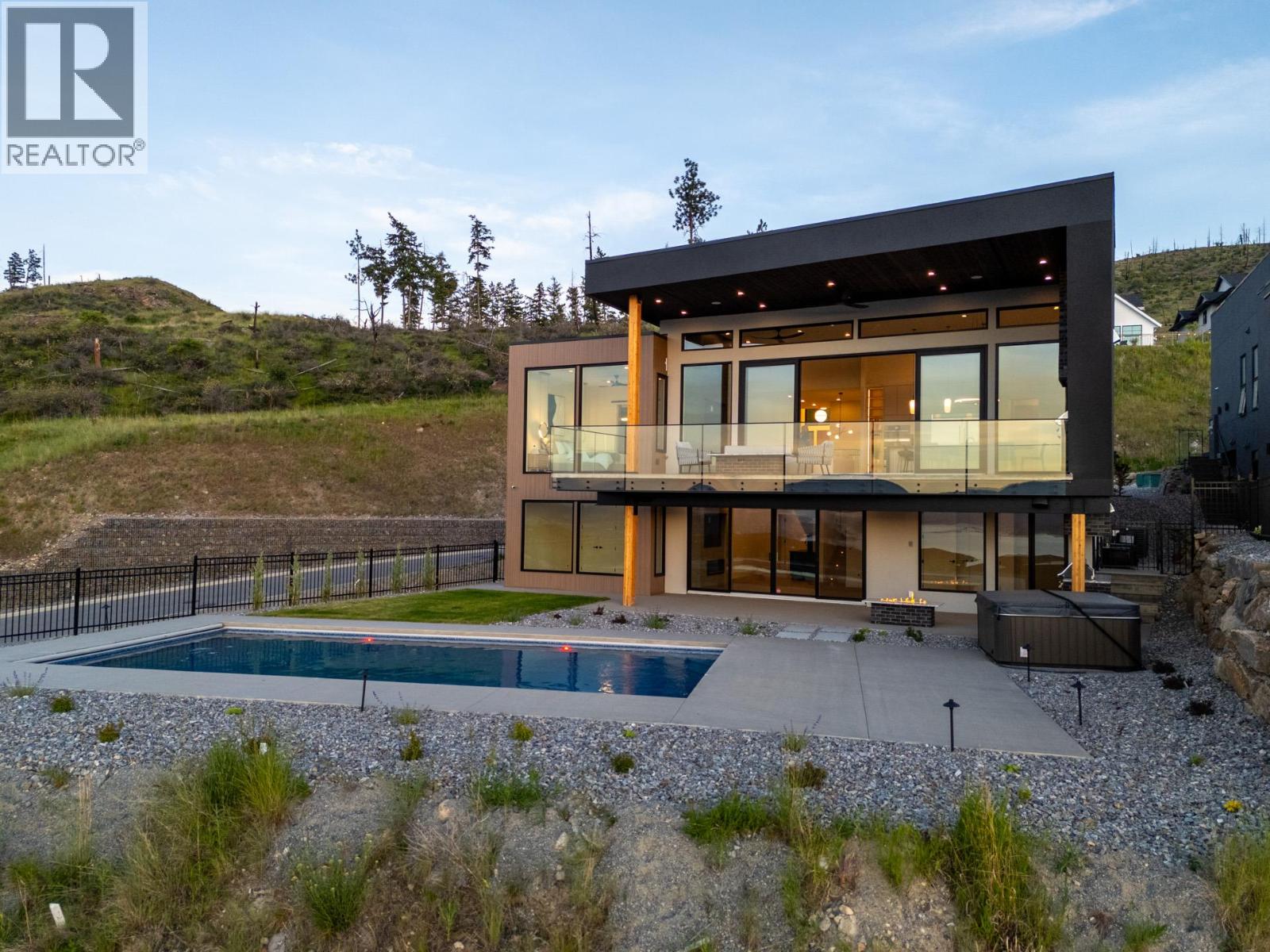 Experience modern Okanagan luxury in this brand-new custom-built walkout rancher, designed to impress with striking architecture, high-end finishings, and breathtaking lake, sunset, and city views. This home seamlessly blends contemporary elegance with functional design, delivering an unmatched indoor-outdoor lifestyle. The open-concept main level is highlighted by floor-to-ceiling sliding doors that expand to a spacious covered patio, complete with built-in BBQ, fire table, and panoramic views. The chef’s kitchen is a showstopper with premium Jennair appliances including a 6-burner gas cooktop, built-in oven, full-size fridge/freezer, double dishwashers, and built-in coffee station. A walk-through pantry connects directly to the laundry room and heated garage for everyday convenience. The luxurious primary bedroom features spa-inspired ensuite with fluted freestanding tub, steam shower, and large walk-in closet. A private office and a designer guest powder room with preserved moss wall and onyx sink complete the main level. Downstairs is designed for entertaining, opening directly to your backyard oasis with 16x32 pool (with auto cover), hot tub, and a second built-in BBQ area. Inside, enjoy the wet bar, theater room, gym with sports flooring, and ample storage. The legal 1-bedroom suite (option for a 2nd bdrm) offers flexibility for guests or rental income. Oversized heated garage features epoxy floors, an 11-foot door for RV or boat access, and roughed-in A/C. (id:14735)