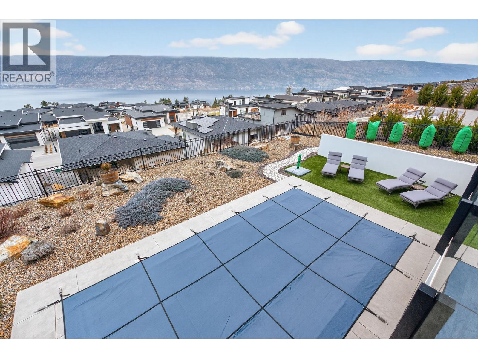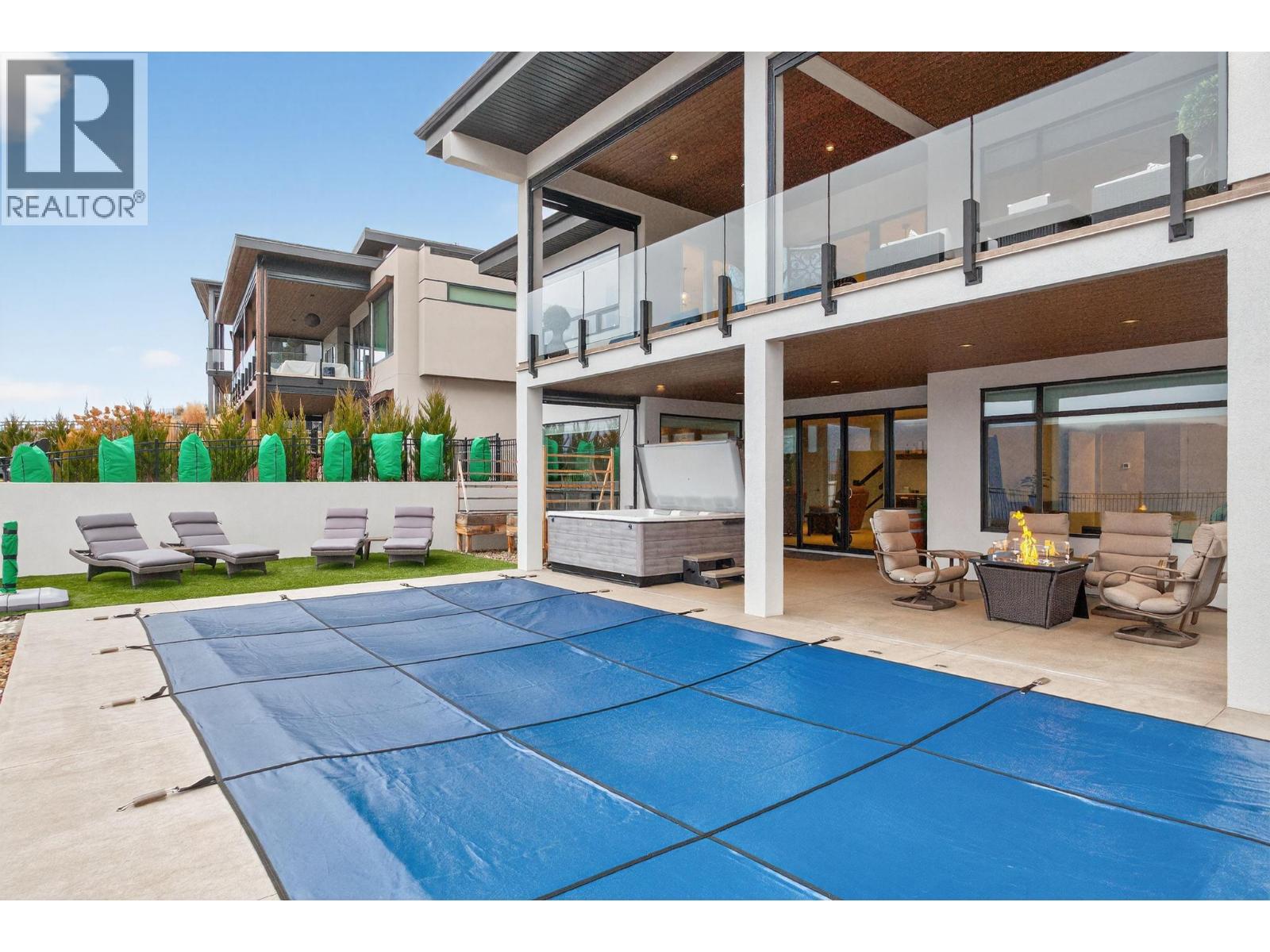 One of the best views in Lakestone! Built by Destination Custom Homes, one of the community’s preferred builders, this immaculate walk-out rancher offers breathtaking lake views and the perfect setting to enjoy the in-ground pool and Okanagan lifestyle. Featuring modern minimalist design, oversized windows, abundant natural light, and an open layout ideal for entertaining. The 500 sq ft deck off the living room with French sliding doors and power shades extends indoor/outdoor living. The kitchen includes quartz countertops, full-size fridge/freezer, gas range, and walk-in pantry. The primary suite offers a walk-in closet and 4-piece ensuite with heated floors. A spacious office and powder room complete the main level. The walk-out lower level features a wet bar, fireplace, two guest bedrooms, and exterior access to the guest bathroom — perfect after pool or hot tub use. The backyard is an entertainer’s dream with pool, hot tub, and unique fluorescent rock pathway. Efficient home with 32 solar panels, dual-zone HVAC, and EV-ready setup. Lakestone offers 28 km of walking trails, multi-sport courts, The Lake Club, and Centre Club, plus easy access to shopping, schools, wineries, restaurants, golf, skiing, Kelowna International Airport, and downtown Kelowna (25 min). Don’t miss this rare opportunity! *Open House Saturday February 21st from 12-2* (id:14735)