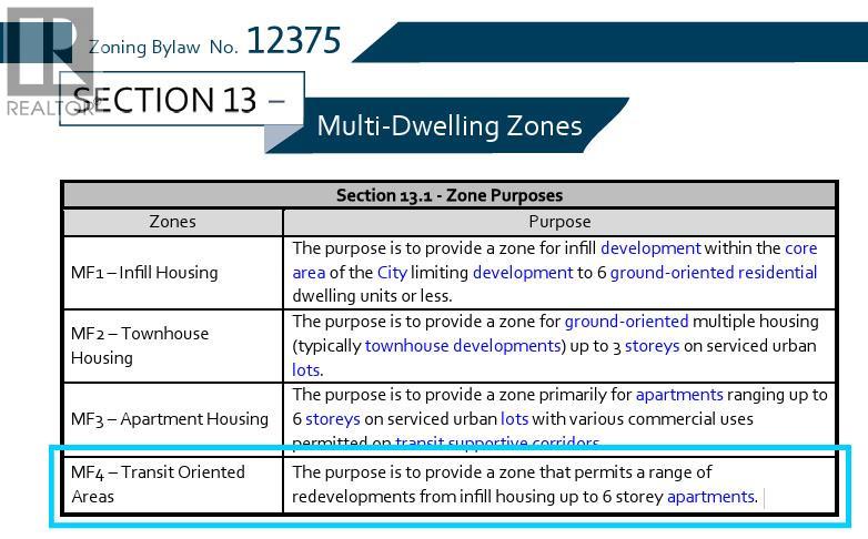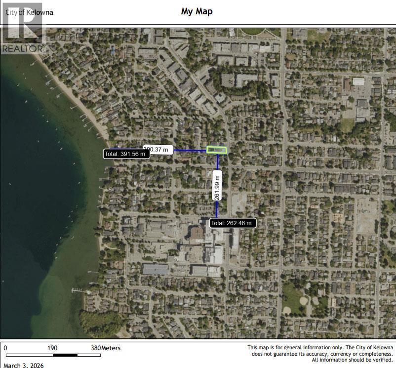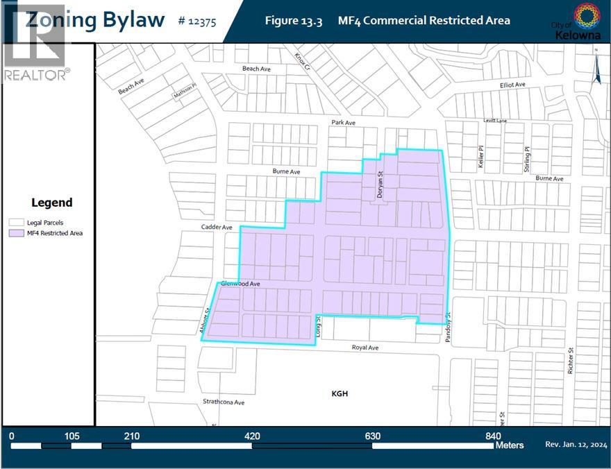 Prime Transit-oriented Multi-family Development Site just 300 meters from Kelowna General Hospital. This rare 0.45-acre site is ideally located within the Hospital Transit Oriented Area, the property is zoned MF4 – Transit Oriented Areas with future land use designation Core Area – Health District (C-HTH). Zoning supports multi-unit residential development up to approximately 6 storeys with a base FAR of 2.5 and potential for bonus density, and is exempt from minimum park…ing requirements under the Zoning Bylaw, offering valuable flexibility for developers. Walking distance to beaches, City Park, Downtown, schools, and the Abbott Street Active Transportation Corridor, and only minutes to the South Pandosy Urban Centre, Okanagan College, major shopping centres, future UBCO Downtown Campus. This is a rare opportunity in a high-demand location with strong fundamentals and outstanding long-term growth potential! Measurements are approximate and should be independently verified. Buyers are responsible for confirming all information and conducting their own due diligence. (id:14735)