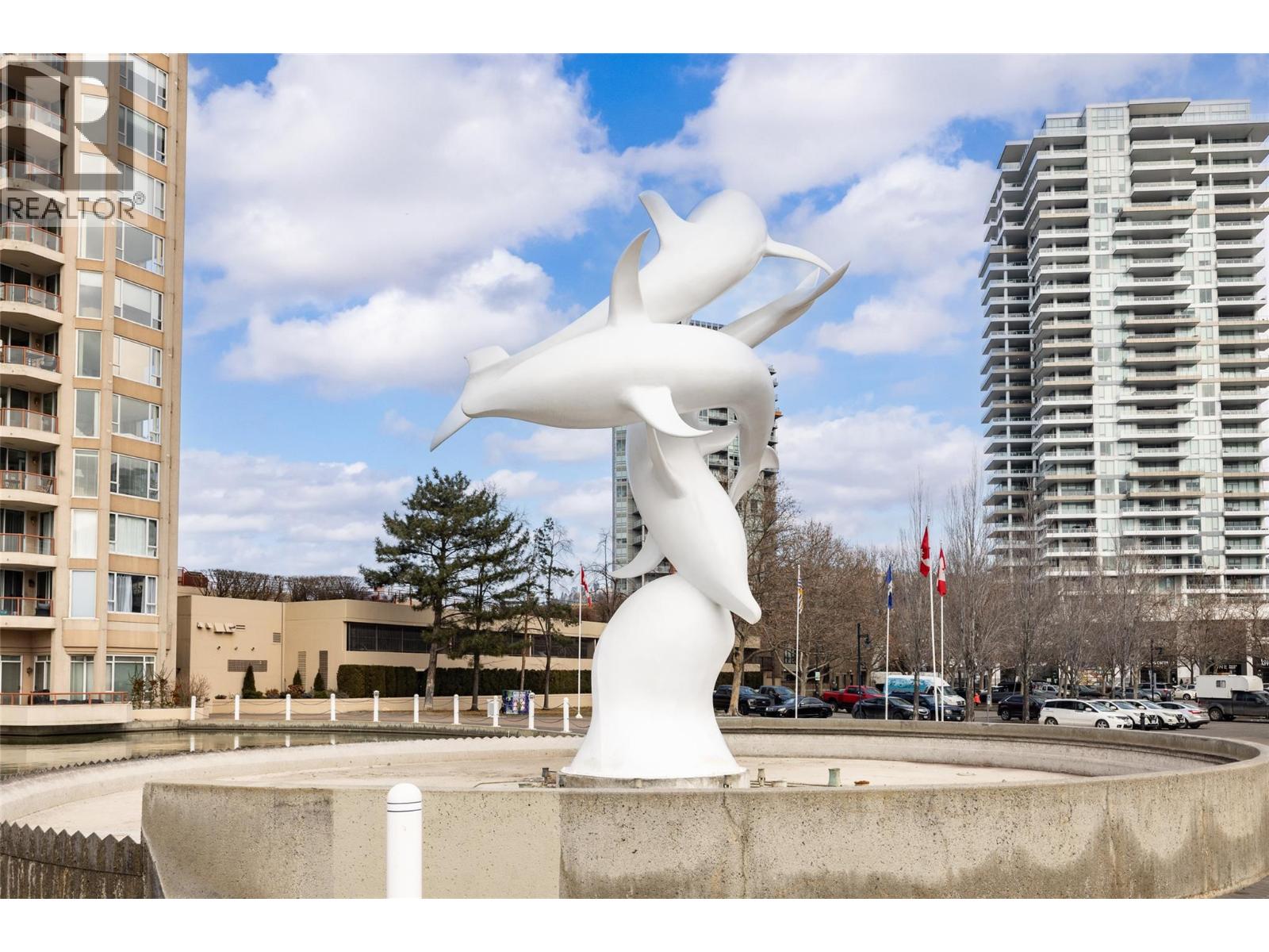 Iconic waterfront living in the heart of Kelowna’s Cultural District! Perfectly positioned on the waterfront, this beautiful two bedroom two bathroom lakeview condo offers a front-row seat to the very best of downtown Kelowna living. Inside, expansive walls of windows flood the home with natural light and frame views of Okanagan Lake, the bridge, the boardwalk, and the iconic Dolphins fountain below. The thoughtfully designed floor plan blends comfort and function, with… a generous living area, ideal for both everyday living and entertaining. The kitchen features bar-style seating, under-cabinet lighting, ample cabinetry, and abundant counter space, seamlessly opening to the dining area where lake and city views elevate every meal. Step outside to not one, but two private patios, perfect for morning coffee, sunset dinners, or a glass of Okanagan wine as the city lights come alive. The primary bedroom is a true retreat, complete with a walk-in closet and a private ensuite, while the second bedroom and full bathroom provide flexibility for guests, a home office, or family. The Dolphins offers resort-style amenities including an outdoor pool, hot tub, tennis court, fitness centre, and immaculately maintained grounds. Right outside your doorstep you’ll find Kelowna’s Cultural District, with world-class dining, galleries, theatres, boutique shopping, and microbreweries just steps away. Walk to the beach, marina, yacht club, boardwalk, festivals, and waterfront parks, or simply enjoy the energy of downtown from your own balcony. Whether you’re seeking a full-time residence, a high-end urban retreat, or a premier waterfront investment, this is lakefront living at its most iconic, where culture, convenience, and the Okanagan lifestyle meet. (id:14735)